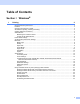 Table of Contents Section I 1 Printing Windows® 2 Using the Brother printer driver..................................................................................................................2 Features ....................................................................................................................................................2 Choosing the right type of paper................................................................................................................
