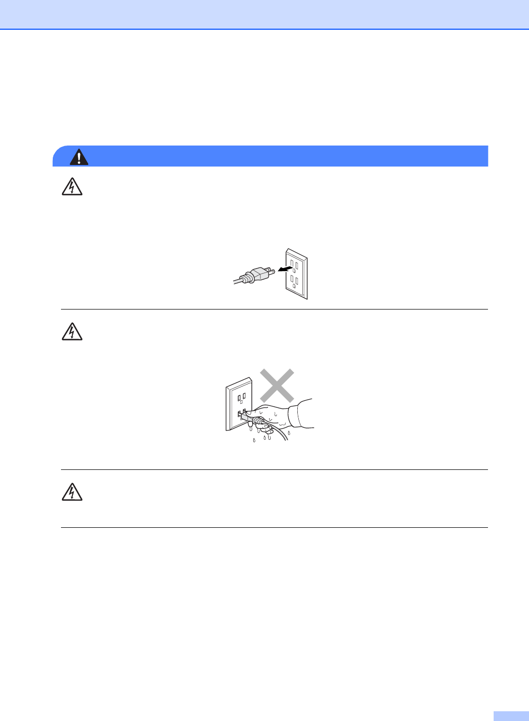 DO NOT handle the plug with wet hands. Doing this may cause an electrical shock.