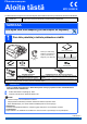 Pika-asennusopas Aloita tästä MFC-5890CN Lue tämä Pika-asennusopas ennen koneen käyttöä varmistuaksesi asetusten ja asennuksen oikeasta suorituksesta. Noudata näitä varoituksia mahdollisten henkilövahinkojen välttämiseksi. VAROITUS TÄRKEÄÄ ÄLÄ kytke vielä USB-kaapelia (jos USB-kaapeli on käytössä). 1 Pura laite paketista ja tarkista pakkauksen sisältö.