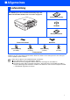 ■ Allgemeines Lieferumfang Die Abbildungen in dieser Installationsanleitung zeigen das MFC-210C bzw. MFC-410CN, wenn nicht anders angegeben. Installationsanleitung CD-ROM Benutzerhandbuch Faxanschlusskabel Netzkabel Schwarz (Black) Magenta Gelb (Yellow) Cyan (LC-900BK) (LC-900M) (LC-900Y) (LC-900C) Tintenpatronen Der Lieferumfang kann in den verschiedenen Ländern unterschiedlich sein.