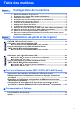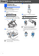 Table des matières Étape 1 Configuration de la machine 1. 2. 3. 4. 5. 6. 7. 8. 9. 10. 11. 12. Étape 2 Retrait des éléments de protection .................................................................. 4 Installation du combiné (MFC-620CN uniquement) ........................................ 4 Alimentation du papier ...................................................................................... 4 Installation des cordons téléphoniques et d'alimentation .............................