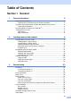 Table of Contents Section I 1 General General Information 2 Using the documentation ....................................................................................... 2 Symbols and conventions used in the documentation .................................... 2 Accessing the Software User’s Guide and Network User’s Guide ........................ 2 Viewing Documentation ................................................................................... 2 Accessing Brother Support (For Windows®) ........