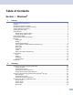 Table of Contents Section I 1 Windows® Printing Using the Brother printer driver..................................................................................................................2 Features ....................................................................................................................................................2 Choosing the right type of paper................................................................................................................