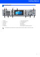 Getting Started 2 Control panel 11 10 9 8 7 6 Mem. Fax 12:45 21.12.2007 12 1 2 3 4 1 Dial Pad 7 2 Telephone keys 8 Ink Management key 3 Mode keys 9 Fax Preview key 4 Menu keys 10 Microphone 5 Start keys 11 Power Save key 6 Stop/Exit key 12 TAD (Telephone Answering Device) keys 5 LCD (Liquid Crystal Display) For the details of the control panel, see Control panel overview in Chapter 1 of the User’s Guide.