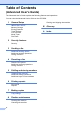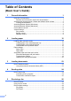 Table of Contents (Basic User’s Guide) 1 General information 1 Using the documentation .......................................................................................1 Symbols and conventions used in the documentation ....................................1 Accessing the Advanced User’s Guide and Software User’s Guide......................2 Viewing Documentation ...................................................................................2 Accessing Brother Support (Windows®) ...............
