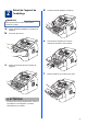 g 3 Remuez-les doucement plusieurs fois à l'horizontale afin de distribuer le toner de manière égale dans la cartouche. a h Fixez le support de sortie du chargeur automatique de documents Dépliez le support de sortie du chargeur automatique de documents. Replacez le tambour et la cartouche de toner dans l'appareil. b Ouvrez le capot du panneau de commande en le soulevant vers l'arrière. Capot du panneau de commande i 4 Fermez le capot avant de l'appareil.