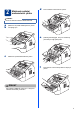 2 Makinenin ambalaj malzemelerini çıkarın d Drum ünitesinin esnek bandını çıkarın. ÖNEMLİ Henüz AC elektrik kablosunu BAĞLAMAYIN. a b Makinenin dışındaki ambalaj bandını çıkarın. Ön kapağı açın. e c Şekilde gösterildiği gibi, koruyucu malzemeyi çıkarmak için kağıt şeridi çekin. Makinenin içindeki Silika Paketini çıkarın. f Drum ünitesi ve toner kartuşu takımını dışarıya çıkarın. CAUTION DİKKAT Silis paketini YEMEYİN. Çöpe atın. Yuttuğunuz takdirde derhal tıbbi yardım alın.