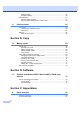 Table of Contents Section I 1 General General information 2 Using the documentation ....................................................................................... 2 Symbols and conventions used in the documentation .................................... 2 Accessing the Software User’s Guide and Network User’s Guide (MFC-7440N and MFC-7840W only).................................................................. 2 Viewing documentation ...............................................................