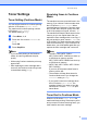 Chapter 1 LCD Contrast 1 Mode Timer You can change the contrast to make the LCD look lighter or darker. The machine has three mode keys on the control panel: FAX, SCAN, and COPY. a b You can set how much time the machine takes after the last Copy or Scan operation to return to Fax mode default. If you choose Off, the machine will stay in the mode you used last. c Press Menu, 1, 5. Press c to make the LCD darker. Or, press d to make the LCD lighter. Press OK. Press Stop/Exit.