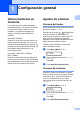 Configuración general Cambio de hora (solamente Chile/Argentina) Funciones de ecología a a Fecha y hora 2.Cambiar hora Pulse a o b para seleccionar Horario verano o Horario invier. Pulse OK. c Realice uno de los siguientes pasos: Para cambiar a Horario verano o Horario invier, pulse 1. Para salir sin realizar cambios, pulse 2. d Pulse Stop/Exit (Detener/Salir). 1 1 Puede ahorrar tóner mediante esta función. Si configura el ahorro de tóner como Si, aparecerá la impresión más clara.