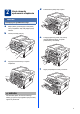 2 Usuń elementy opakowania urządzenia d Podnieś taśmę elastyczną z bębna. WAŻNE NIE WOLNO jeszcze podłączać przewodu zasilającego do gniazdka ściennego. a b Zdejmij taśmę opakowującą z zewnętrznej strony urządzenia i folię zakrywającą szybę skanera. Otwórz przednią pokrywę. e c Pociągnij papierowy pasek, aby usunąć materiał zabezpieczający w sposób przedstawiony na ilustracji. Wyjmij żel krzemionkowy z wnętrza urządzenia. f Wyjmij zespół bębna i kasety z tonerem.