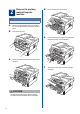 2 Remove the packing material from the machine d Lift the elastic band off the drum. IMPORTANT DO NOT connect the AC power cord yet. a b Remove the packing tape from the outside of the machine and the film covering the scanner glass. Open the front cover. e c Remove the Silica Pack from the inside of the machine. f CAUTION CAUTION DO NOT eat the Silica Pack. Please discard. If ingested seek medical attention immediately.