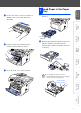 Rock it fr om sid e to sid e seve ra l tim es to distri bu te th e ton er e ven ly insid e the asse mbly. 1 Pu ll the p ap er tra y comp le te ly ou t o f the mach in e. 2 While pre ssin g the pa pe r guid e re lease l ever, sl ide the a dju ster s to fi t the pa pe r size . Check th at th e gui des are firm ly in the slo ts on the tray. 4 Pu sh th e dru m u nit assemb ly in to th e Windows NT® 4.0 Parallel machin e (u ntil it sna ps into pl ace).