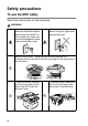 Document jams Based upon where the document is jammed, follow the appropriate set of instructions to remove it. Document is jammed in the top of the ADF unit. 1 2 3 4 5 Take out any paper from the ADF that is not jammed. Lift the ADF cover. Pull the jammed document out to the right. Close the ADF cover. Press Stop/Exit. Document is jammed inside the ADF unit. 1 Take out any paper from the ADF that is not jammed. 2 Lift the document cover. 3 Pull the jammed document out to the right.