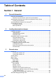 Table of Contents Section I 1 General General Information Using the documentation .......................................................................................2 Symbols and conventions used in the documentation ....................................2 Accessing the Software User’s Guide and Network User’s Guide ........................2 Viewing Documentation ...................................................................................2 Accessing Brother Support (For Windows®) ................