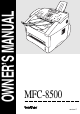 If You Need to Call Customer Service Please complete the following information for future reference: Model Number: MFC-8500 Serial Number*: ______________________________________ Date of Purchase: ______________________________________ Place of Purchase: ______________________________________ * The serial number is on the back of the unit. Retain this manual with your sales receipt as a permanent record of your purchase, in the event of theft, fire or warranty service.