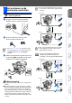 Stap 1 De machine installeren 1 Installeer de ADF-steun 2 Installeer de drumeenheid Sluit de interfacekabel nog NIET aan. De interfacekabel wordt pas aangesloten wanneer de driver wordt geïnstalleerd. 1 Open het ADF deksel. 1 Druk op de ontgrendelingsknop om het frontdeksel te openen. ADF deksel 2 Steek de lipjes van de steun van de automatische documentinvoer één voor één in de daarvoor bestemde gaten.