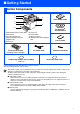 ■ Getting Started Carton Components 1 2 8 7 3 4 Quick Setup Guide 6 5 CD-ROMs For Windows® For Macintosh® 1. Automatic Document Feeder (ADF) 2. Control Panel 3. Face-down Output Tray Support Flap with Extension (Support Flap) 4. Front Cover Drum Unit Assembly (including Toner Cartridge) 5. Paper Tray 6. Power Switch 7. Document Cover 8.