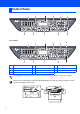 Control Panel MFC-8460N 1 11 2 10 3 4 5 9 8 6 7 MFC-8860DN 1 11 2 10 3 4 5 9 8 6 7 1 One Touch keys 2 Status LED 3 LCD (Liquid Crystal Display) 4 Menu keys 5 Dial Pad 6 Stop/Exit key 7 Start key 8 Copy keys 9 Mode keys 10 Fax and telephone keys 11 Print keys For the details of the control panel, see “Control panel overview” in Chapter 1 of the User’s Guide. When you move the machine, grasp the side handholds that are under the scanner.