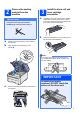 2 Remove the packing material from the machine IMPORTANT 3 a • Save all packing material and the carton in case you have to ship your machine. Install the drum unit and toner cartridge assemblies Unpack the four drum unit and toner cartridge assemblies and gently shake each of them from side to side several times to distribute the toner evenly inside the assembly. • DO NOT plug in the AC power cord yet. b a b Remove the protective cover by pulling on the tab as shown in the illustration.