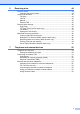 Table of Contents Section I 1 General General information 2 Using the documentation ....................................................................................... 2 Symbols and conventions used in the documentation .................................... 2 Accessing the Software User’s Guide and Network User’s Guide ........................3 Viewing documentation ...................................................................................3 Accessing Brother Support (For Windows®) ..........