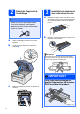 2 Retrait de l’appareil de l’emballage a IMPORTANT • Conservez tous les emballages d’origine et la boîte si, pour une quelconque raison, vous devez réexpédier votre appareil. 3 Installation du tambour et des cartouches d’encre Déballez les quatre unités du tambour et des cartouches d’encre et secouez-les légèrement à l’horizontale plusieurs fois afin de répartir l’encre. • NE branchez pas le cordon d’alimentation secteur à ce stade.