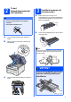 2 Ta bort förpackningsmaterialet från maskinen. a VIKTIGT • Spara allt förpackningsmaterial och kartongen ifall du behöver transportera maskinen. 3 Installera trumman och tonerkassetten Packa upp de fyra trummorna och tonerkassetterna och skaka dem försiktigt från sida till sida flera gånger för att fördela tonern jämnt inuti kassetten. • Anslut INTE nätkabeln ännu. b a b Ta bort transportskyddet genom att dra i fliken som bilden visar. Ta bort förpackningstejpen på maskinens utsida.