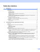 Annexe B Menu principal Sous-menu Sélections de menu 7.Réseau 6.Num vers rés. — (suite) Options B Couleur 100 ppp* Couleur 200 ppp 300 ppp couleur 600 ppp couleur (Si vous avez choisi une option Couleur) PDF* PDF sécurisé Gris 100 ppp JPEG Gris 200 ppp XPS Gris 300 ppp (Si vous avez choisi une option Gris) N&B 200 ppp PDF* N&B 200x100 ppp PDF sécurisé JPEG XPS (Si vous avez choisi une option N&B) PDF* PDF sécurisé TIFF 7.Téléc. au serv — 8.Fuseau horaire — 0.Réinit. réseau 1.Init.