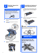 2 Retrait de l’appareil de l’emballage a IMPORTANT • Conservez tous les emballages d’origine et la boîte si, pour une quelconque raison, vous devez réexpédier votre appareil. 3 Installation du tambour et des cartouches d’encre Déballez les quatre unités du tambour et des cartouches d’encre et secouez-les légèrement à l’horizontale plusieurs fois afin de répartir l’encre. • NE branchez pas le cordon d’alimentation secteur à ce stade.