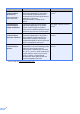 Обработка входящих вызовов Проблемы Рекомендации Устройство “принимает” голос за сигналы CNG. Если включен параметр Обнаружение факса, аппарат более чувствителен к звукам. Аппарат может ошибочно интерпретировать некоторые голоса или мелодии на линии как сигнал вызова факсимильного аппарата и ответить сигналами приема факса. Отключите аппарат нажатием клавиши . Попробуйте решить эту проблему отключением функции Обнаружения факса (см. Обнаружение факса uu стр. 50). Отправка вызова факса на аппарат.