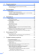 Содержание (Руководство по основным функциям) 1 Общая информация 1 Как пользоваться этим руководством ................................................................ 1 Символы и условные обозначения, принятые в данном руководстве ...... 1 Доступ к утилитам Brother (Windows® 8) ............................................................ 2 Просмотр руководства по дополнительным функциям, руководства по использованию программного обеспечения и руководства пользователя по работе в сети ....................