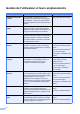 Problèmes d’impression (Suite) Problèmes Suggestions L’appareil imprime les premières pages correctement, puis il manque du texte sur certaines pages. Vérifiez les paramètres de votre application afin de vous assurer qu’ils sont configurés correctement pour votre appareil. L’appareil n’imprime pas des deux côtés de la feuille, même si le paramètre du pilote d’imprimante est réglé sur Recto verso. Vérifiez le paramètre du format de papier dans le pilote d’imprimante.