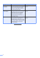 Rozwiązywanie problemów Problemy z siecią (Ciąg dalszy) Problemy Sugestie Nie można zainstalować oprogramowania firmy Brother. (Windows®) Jeżeli podczas instalacji na ekranie komputera pojawia się ostrzeżenie oprogramowania zabezpieczającego, zmień ustawienia oprogramowania zabezpieczającego tak, aby zezwalało na działanie programu konfiguracji produktu firmy Brother lub innego programu.