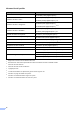 Especificaciones Modelo Nivel de ruido MFC-9130CW Presión de sonido Potencia de sonido Impresión LPAm = 53,0 dB (A) Preparado LPAm = 33 dB (A) Impresión LWAd = 6,42 B (A) LWAd = 6,39 B (A) LWAd = 6,41 B (A) LWAd = 6,42 B (A) Preparado LWAd = 4,38 B (A) LWAd = 4,44 B (A) En servicio 50 °F a 90,5 °F (10 a 32,5 °C) (Color) Impresión (Blanco y negro) Temperatura MFC-9330CDW MFC-9340CDW D Almacenamiento 32 °F a 104 °F (0 a 40 °C) Humedad En servicio 20 a 80% (sin condensación) Almacenami