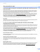 Depanarea Aparatul Brother nu este găsit în reţea la instalarea MFL-Pro Suite. Întrebare Interfaţă Soluţie Aparatul este conectat la reţea şi are o adresă IP valabilă? prin cablu/ Imprimaţi raportul de configurare reţea şi verificaţi că Ethernet Link Status fără fir sau Wireless Link Status este Link OK. Consultaţi Imprimarea raportului de configurare reţea uu pagina 46. Dacă raportul indică Failed To Associate sau Link DOWN, întrebaţi administratorul de reţea dacă adresa IP este valabilă.