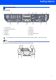 Getting Started 2 Control panel MFC-9840CDW 1 2 3 4 5 6 2008/05/01 18:00 Fax Only Sleep 12 11 9 10 1 One Touch keys 7 Start keys 2 LCD (Liquid Crystal Display) 8 Copy keys 3 Status LED 9 Duplex key 4 Menu keys 10 Mode Keys 5 Dial Pad 11 Fax and Telephone keys 6 Stop/Exit key 12 Print keys 8 7 For the details of the control panel, see Control panel overview in Chapter 1 of the User’s Guide. Note This machine is heavy and weighs 38 kg (83.6 lb).