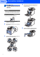 De machine installeren 2 1 2 3 4 De tonercartridges installeren Herhaal stap 1 tot en met 3 voor de overige tonercartridges. 5 Plaats de drumeenheid weer in de machine. 6 Sluit de voorklep van de machine. Haal de tonercartridges uit de verpakking en schud elke cartridge 5 à 6 keer rustig heen en weer. Verwijder de bescherming. Houd de tonercartridge bij de handgreep vast en schuif de cartridge in de drumeenheid.