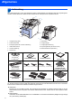 Allgemeines 2 Funktionstastenfeld MFC-9840CDW 2 1 3 5 4 6 05/01/2008 18:00 Nur Fax Energiesparen 12 11 9 10 1 Zielwahltasten 7 Start-Tasten 2 Display 8 Kopiertasten 3 LED-Status 9 Duplex-Taste 4 Menü-Tasten 10 Betriebsarten-Tasten 5 Zifferntasten 11 Fax- und Telefontasten 6 Stopp-Taste 12 Drucker-Tasten 8 7 Weitere Informationen erhalten Sie unter „Tasten und ihre Funktionen“ in Kapitel 1 des Benutzerhandbuches. Hinweis Das Gerät ist schwer und wiegt 38 kg.