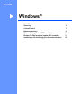 Avsnitt I ® Windows Utskrift Skanning ControlCenter3 Nätverksskanning Fjärrinställning (endast MFC-modeller) Brother PC-FAX-program (endast MFC-modeller) Inställningar för brandvägg (för nätverksanvändare) I 2 38 70 92 109 111 129