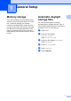 1 General Setup Memory storage Your menu settings are stored permanently, and in the event of a power failure will not be lost. Temporary settings (for example, Contrast, Overseas Mode) will be lost. Also, during a power failure the machine will retain the date and time and programed fax timer jobs (e.g. Delayed Fax) for up to 60 hours. Other fax jobs in the machine memory will not be lost.