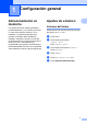 Capítulo 1 Configuración del temporizador de atenuación de la retroiluminación Pulse MENÚ. El Prefijo de marcación marcará automáticamente un número predefinido antes del número de fax que usted marque. Por ejemplo: si su sistema telefónico exige que se marque un 9 antes de un número externo, use este ajuste para marcar automáticamente el número 9 antes de enviar un fax. Pulse a o b para mostrar Config. gral.. Pulse Config. gral.. Configuración del número de prefijo Pulse a o b para mostrar Configur.