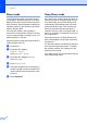Chapter 4 h Press Stop/Exit. Fax Storage Note The Fax Storage feature lets you store your received faxes in the machine’s memory. You can retrieve stored fax messages from a fax machine at another location using the remote retrieval commands. (See Retrieving fax messages on page 34.) Your machine will automatically print a copy of the stored fax. • If you have set Paging, a backup copy will automatically be printed at the machine. • You cannot change a Paging or PIN number remotely.