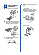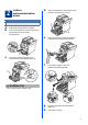 2 Laitteen pakkausmateriaalien poisto d Vedä rumpuyksikköä a vihreästä kahvasta ulospäin niin pitkälle kuin se tulee. TÄRKEÄÄ ÄLÄ kytke vielä sähköjohtoa. a b Poista pakkausteippi laitteen ympäriltä. Avaa monitoimialusta a, poista muovikalvo b monitoimialustan tuesta ja sulje monitoimialusta. e c Poista oranssinvärinen pakkausmateriaali vetämällä sitä varovasti laitteen edestä. Avaa etukansi painamalla etukannen vapautusvipua. Poista silikageelipussi a.