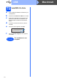 USB Macintosh For USB interface users (Mac OS X 10.4.11, 10.5.x, 10.6.x) 13 a Before you install c Make sure your machine is connected to the power and your Macintosh is ON. You must be logged on with Administrator rights. 14 Connect the USB cable • DO NOT connect the machine to a USB port on a keyboard or a non-powered USB hub. • Connect the machine directly to your Macintosh. Make sure that the cable does not restrict the cover from closing, or an error may occur.