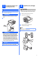 4 Connect the power cord and telephone line CAUTION IMPORTANT DO NOT connect the USB cable yet. a Connect the power cord. WARNING b The machine must be fitted with an earthed plug. Install the ink cartridges If ink gets in your eyes, wash them out with water at once, and if irritation occurs consult a doctor. a b c d Make sure that the power is turned on. Open the ink cartridge cover. Remove the green protective part. Unpack the ink cartridge.