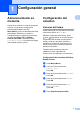 1 Configuración general Almacenamiento en memoria Incluso si se produce un corte del suministro eléctrico, no perderá la configuración seleccionada mediante el botón Menu (Menú), ya que se almacena de forma permanente. Además, no perderá la configuración de los menús de los botones de los modos FAX, COPY (COPIA) y PHOTO CAPTURE si ha seleccionado Ajus.Nuev.Predet. Es posible que tenga que reajustar la fecha y hora.