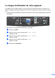 Chapitre 5 Configurations du mode de réception Longueur de sonnerie La Longueur de sonnerie détermine le nombre de sonneries qu'émettra l'appareil avant que celui-ci ne réponde à l'appel dans le mode Fax seulement ou Fax/Tél. Si des téléphones externes ou supplémentaires sont utilisés sur la même ligne que l'appareil, conservez la valeur de 4 sonneries comme réglage de longueur de sonnerie. (Voir Utilisation de téléphones externes et supplémentaires à la page 39 et Réception facile à la page 31.