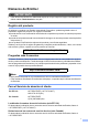 Menús y funciones Speed Dial ( ) Nivel1 Nivel2 Nivel3 Opciones Descripciones Página Buscar — — Orden alfabético Puede buscar los nombres guardados en la memoria de Marcación rápida. 38 Orden numérico Conf. M.abreviada — — — Puede configurar los números de marcación rápida para marcar con solo pulsar unos botones (y Start (Inicio)). 40 Conf. grupos — — — Puede configurar números de grupo para multienvío. Consulte 1. 1 Consulte la Guía avanzada del usuario.