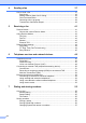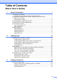 Table of Contents (Advanced User’s Guide) The Advanced User’s Guide explains the following features and operations. You can view the Advanced User’s Guide on the CD-ROM. 1 General setup 8 IMPORTANT NOTE Memory Storage Volume Settings Automatic Daylight Saving Time Sleep Mode Touchscreen LCD Dial Prefix 2 3 PhotoCapture Center™ operations Print Images PhotoCapture Center™ print settings Scan to a memory card or USB Flash memory drive Security features Secure Function Lock 2.