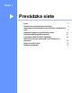 Časť I Prevádzka siete Úvod Zmena sieťových nastavení zariadenia Nakonfigurovanie zariadenia na používanie v bezdrôtovej sieti Nastavenie pomocou ovládacieho panela Aplikácia Web Based Management Prevádzka LDAP (Pre MFC-J4510DW) Internetový fax (pre modely MFC) (K dispozícii na prevzatie) Bezpečnostné funkcie Riešenie problémov 2 5 9 31 46 58 60 72 75
